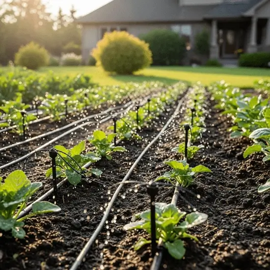 Solução ideal para canteiros e hortas, levando água diretamente às raízes e economizando até 70%.